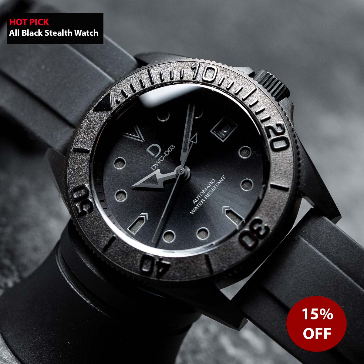 DIY Watch Kit | Stealth Black Dive Watch with Seiko movement and Black FKM Rubber Band